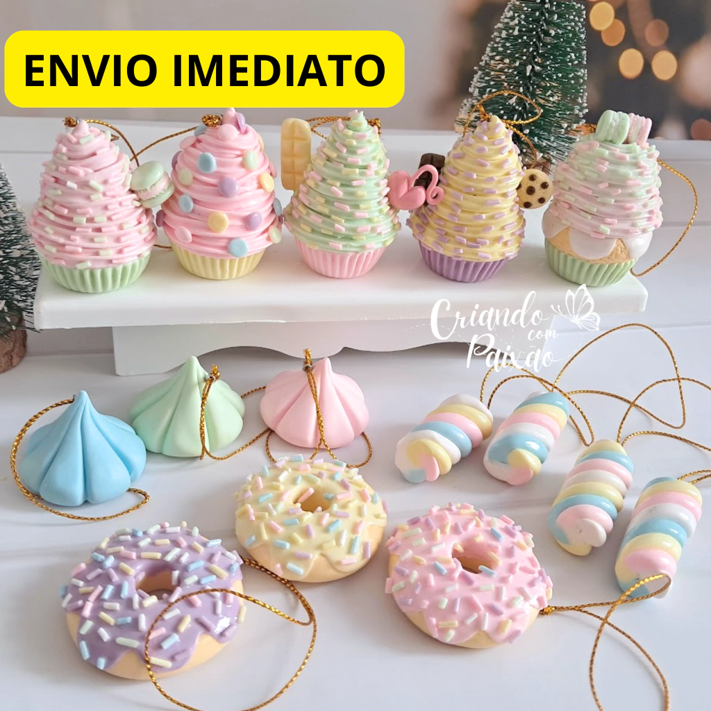 Já imaginou uma árvore de Natal que parece ter saído direto de uma confeitaria dos sonhos? Os nossos pingentes natalinos em forma de cupcakes, donuts e macarons são a escolha perfeita para quem deseja uma decoração original, delicada e cheia de personalidade!